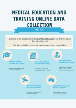 The Medical Education and Training (MET) factsheets provide a comprehensive picture of medical education and training in Australia as well as the supply of medical practitioners from overseas. ‘MET2’ is the second data collection in the MET series bringing together the latest information from a range of sources.